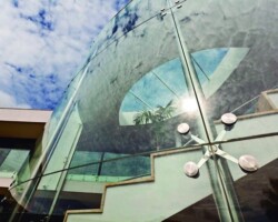 O SPIDER GLASS system é uma solução de envidraçamento exterior, permitindo a fixação dos vidros à estrutura por intermédio de ferragens especiais articuladas, além de unir leveza, segurança e performances à realização de obras amplamente envidraçadas, lisas e transparentes.